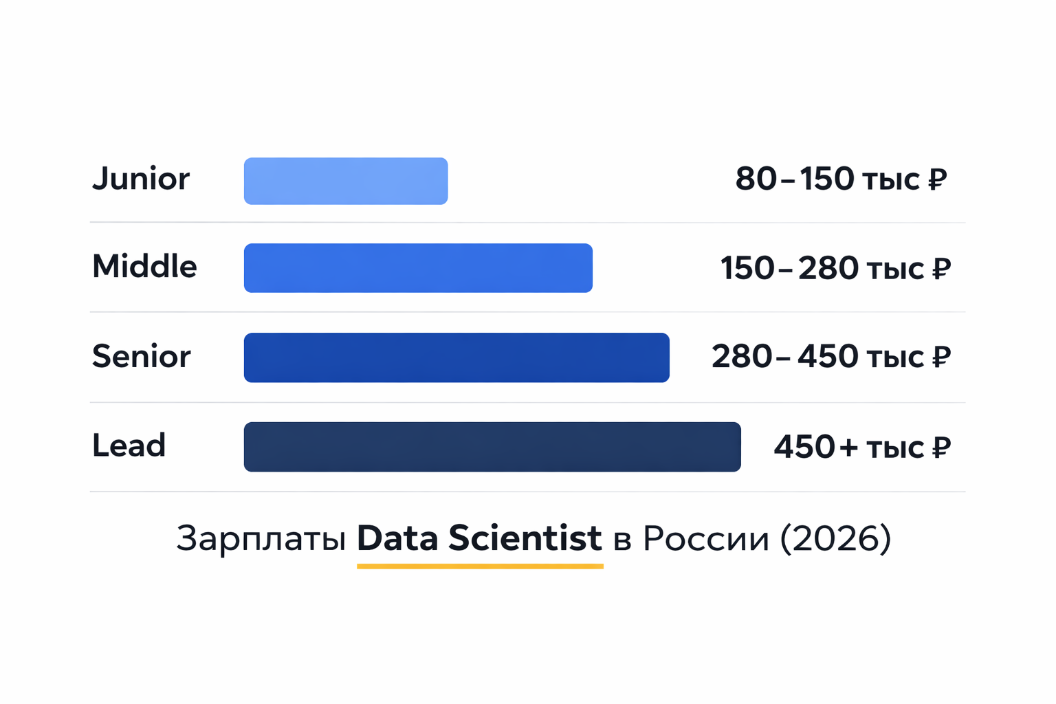 Профессия Data Scientist стабильно входит в топ самых востребованных и высокооплачиваемых. Рассмотрим карьерные уровни и актуальные зарплатные вилки на основе анализа рынка труда.
