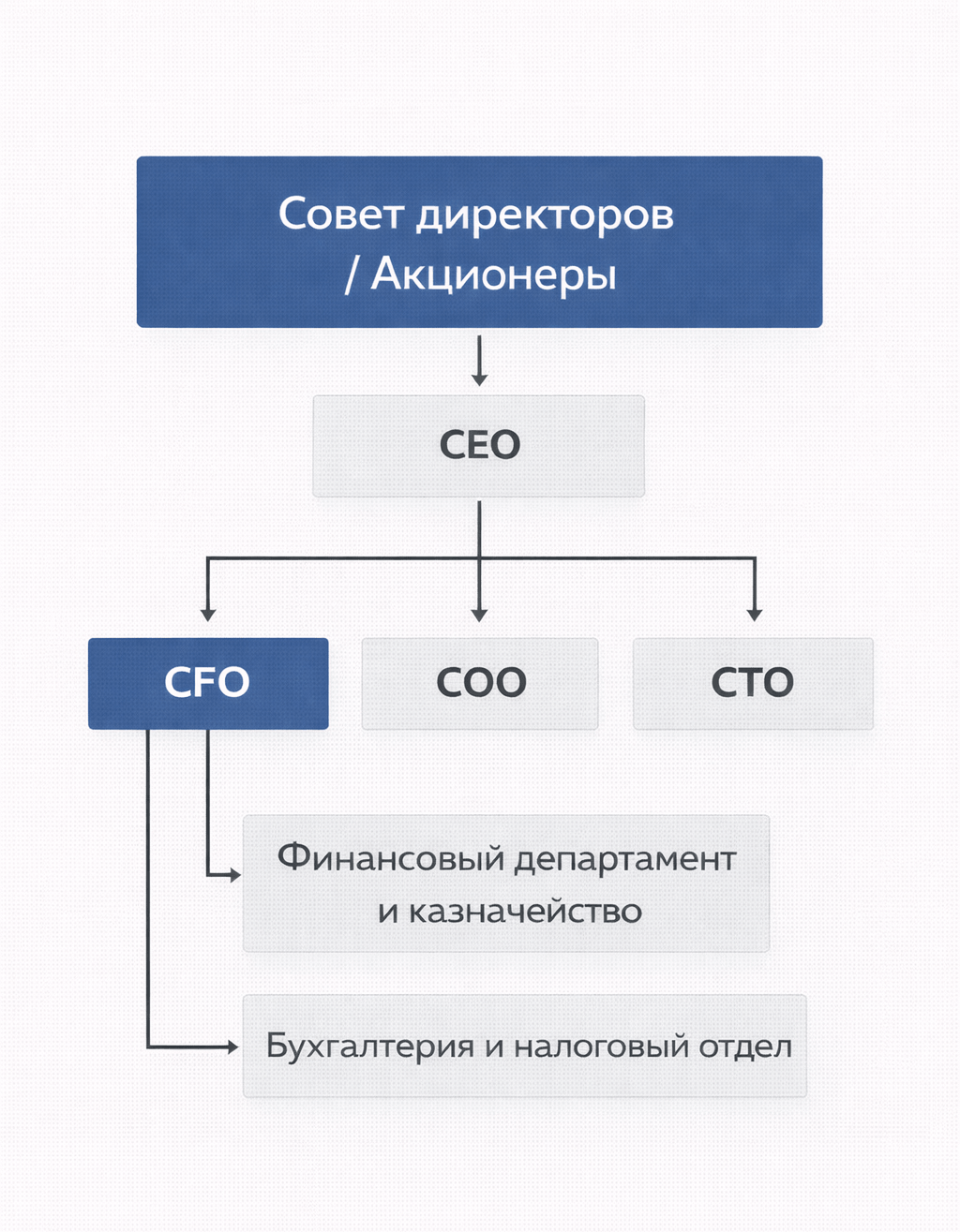 Кому подчиняется финансовый директор?Финансовый директор подчиняется генеральному директору. В компаниях с акционерным управлением CFO также подотчётен совету директоров и акционерам: он регулярно представляет им финансовую отчётность и стратегические планы.