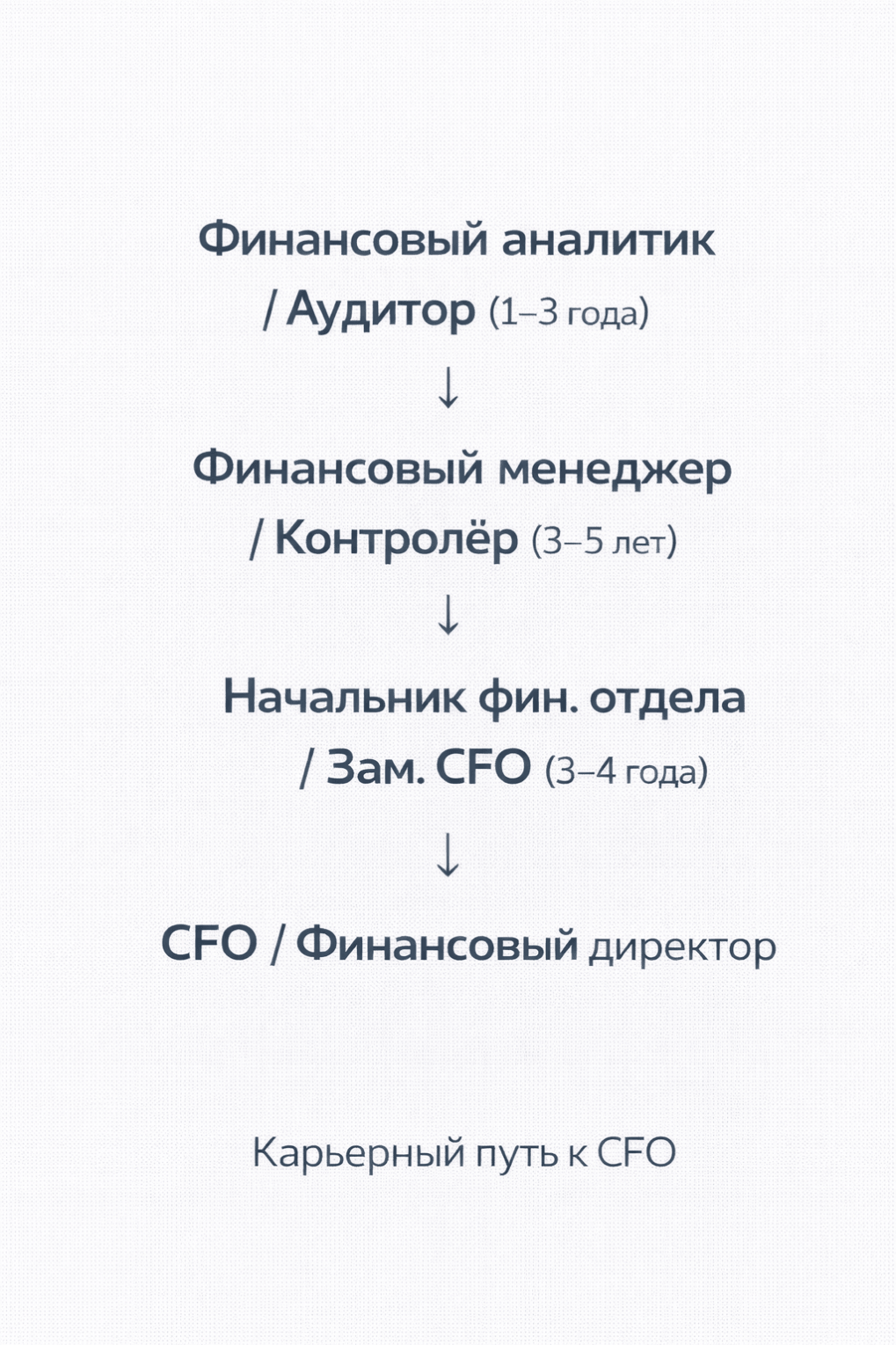 4. Вершина. CFO. После 10–12 лет релевантного опыта и получения дополнительной квалификации специалист готов к позиции финансового директора.