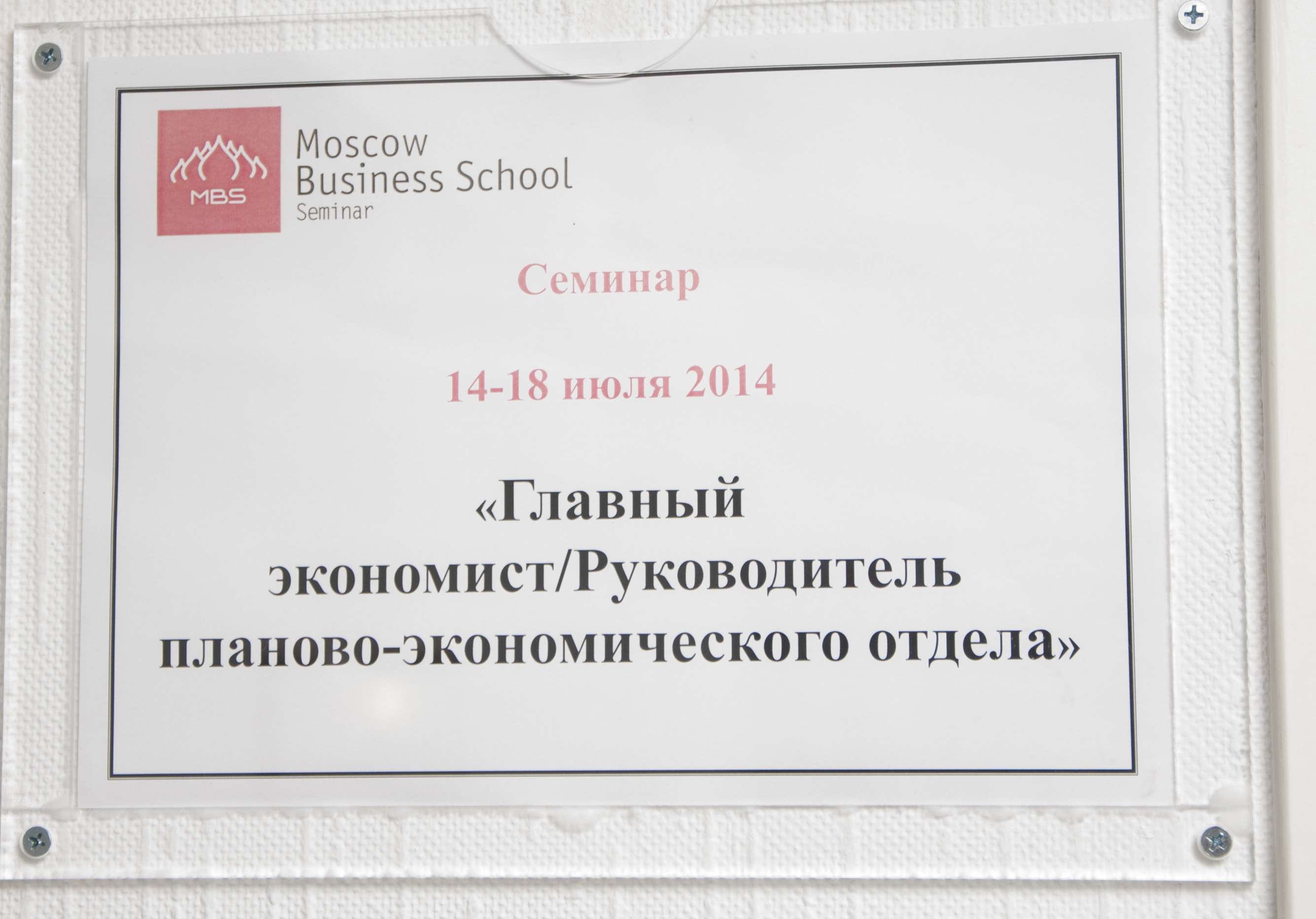 Главный экономист/Руководитель планово-экономического отдела, 14 - 18 июля 2014 года