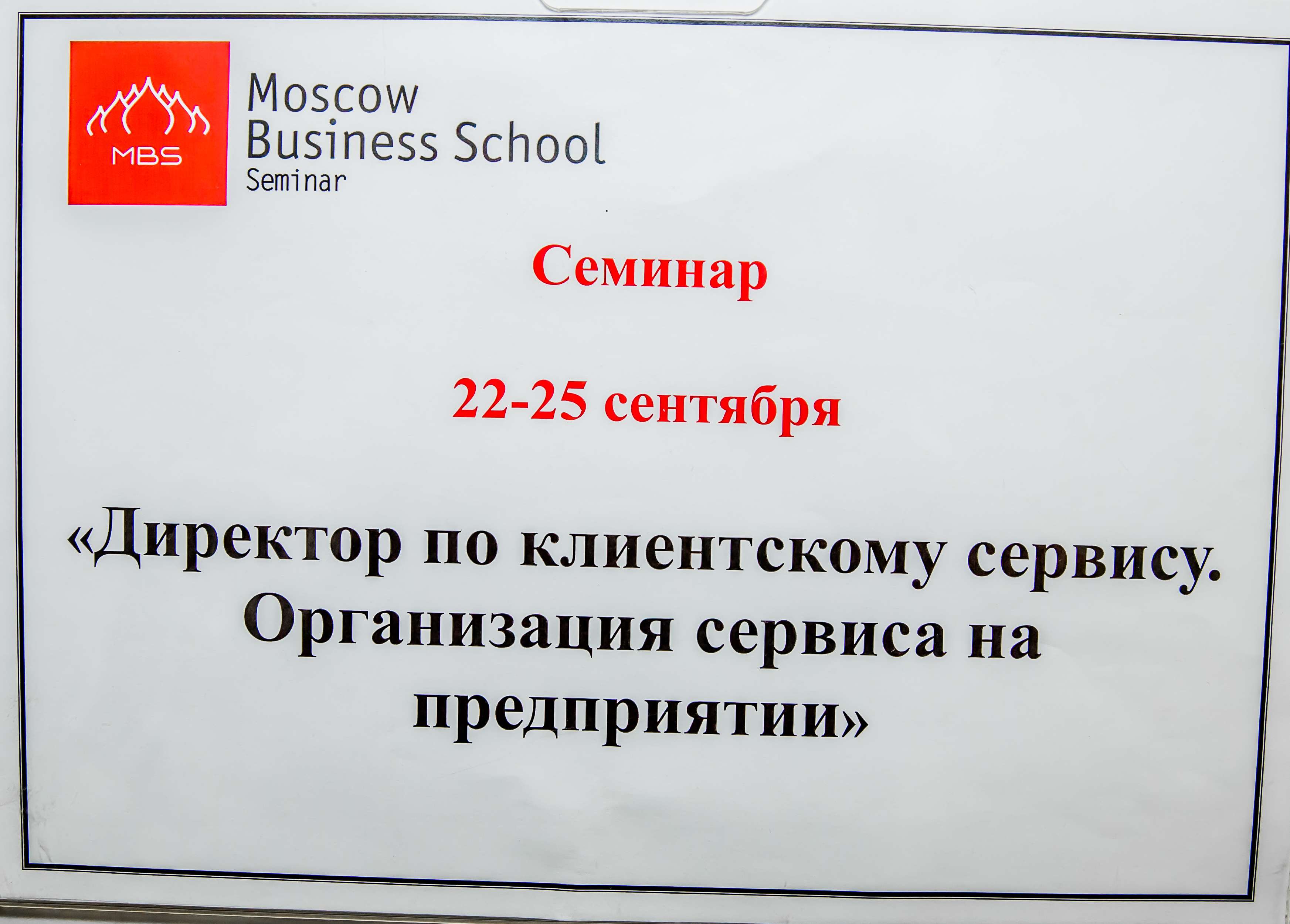 Директор по клиентскому сервису. Организация сервиса на предприятии, 22 - 25 сентября 2014 года
