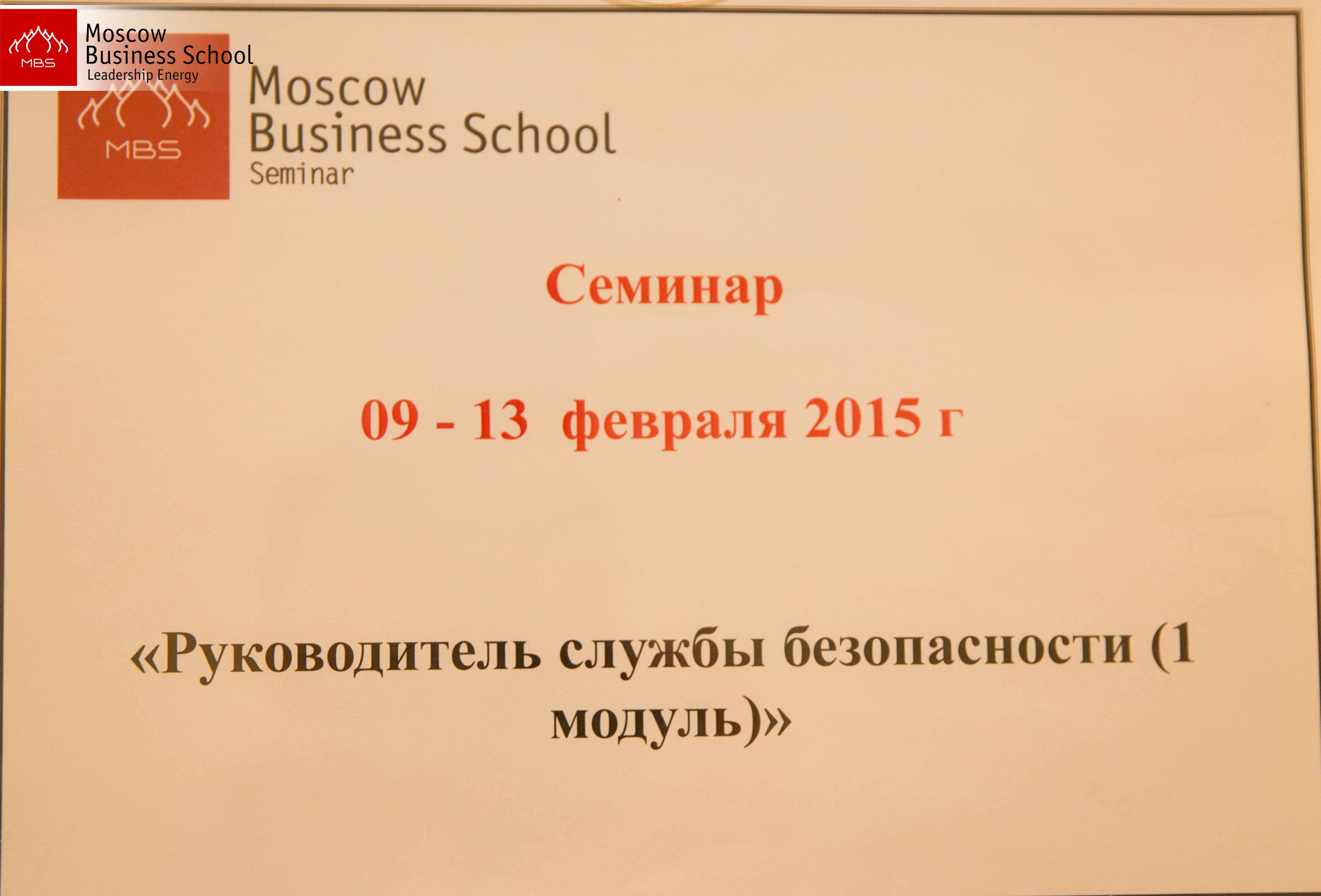 Руководитель службы безопасности (1 модуль), 09 - 13 февраля 2015 года