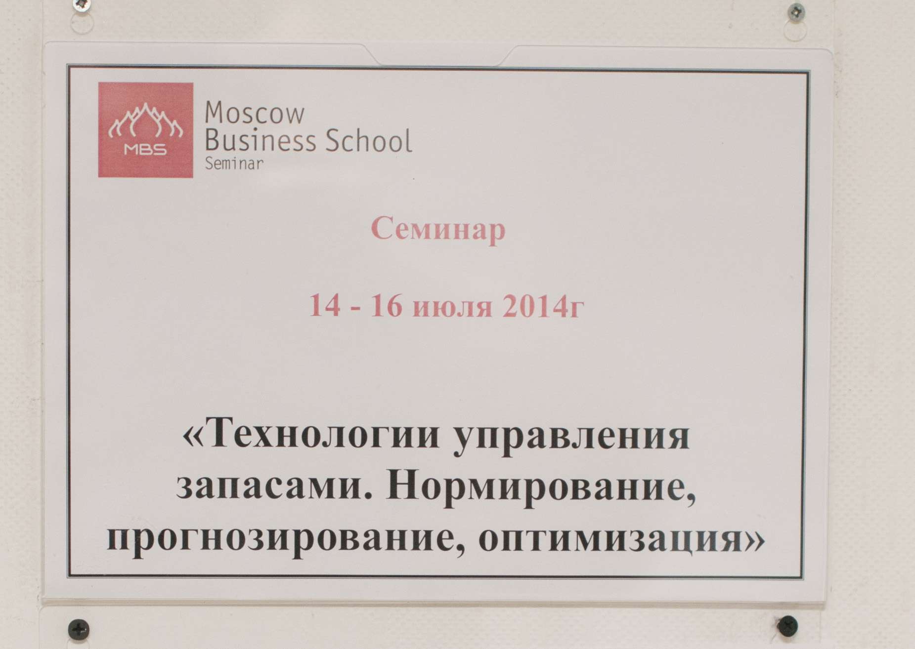 Технологии управления запасами. Нормирование, прогнозирование, оптимизация, 14 - 16 июля 2014 года