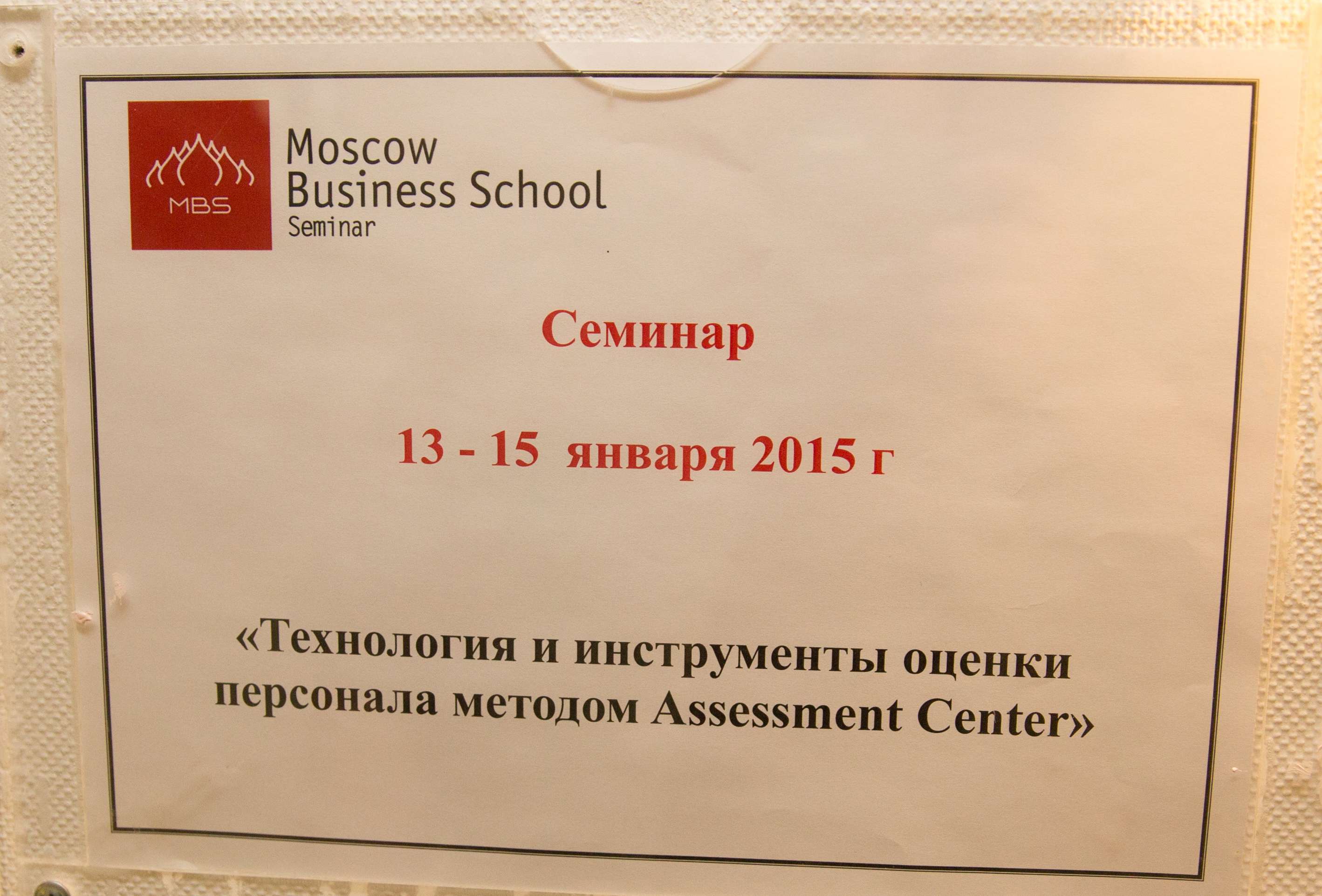 Технология и инструменты оценки персонала методом Assessment Center, 13 - 15 января 2015 года