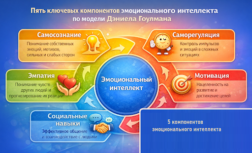 Ниже — пять ключевых компонентов эмоционального интеллекта, которые используются в психологии, обучении и корпоративном развитии.
