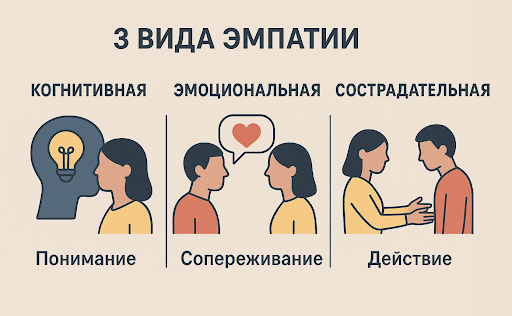 В психологии выделяют три вида эмпатии — вместе они формируют полноценный навык, который особенно важен для работы руководителей, продавцов, HR-специалистов и всех, кто взаимодействует с людьми.