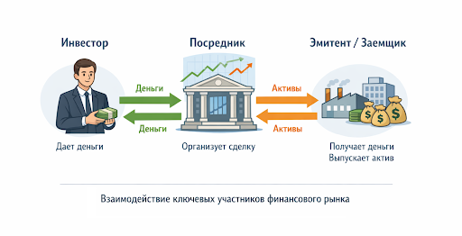 Рынок выступает посредником, создавая условия, при которых обе стороны получают выгоду: инвесторы — доход, а заемщики — капитал для роста.