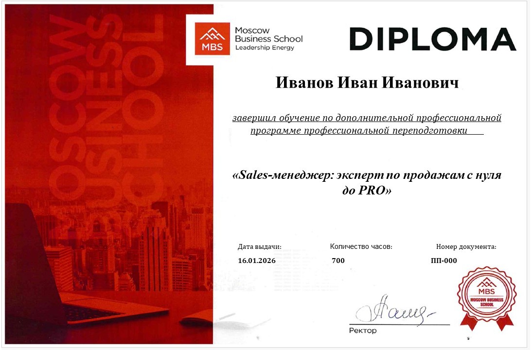 Выпускники, закончившие обучение, получают диплом о профессиональной переподготовке, удостоверяющий право на ведение профессиональной деятельности, с формулировкой в соответствии с требованием вашей организации.